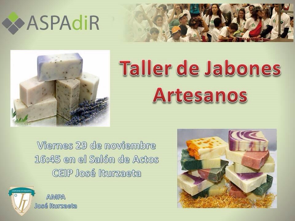 El viernes 29 de Noviembre, a las 16:45, los amigos de ASPADIR acudirán a nuestro cole, para enseñar a nosotros y a nuestros peques como crear bonitos jabones artesanos con material de reciclaje.