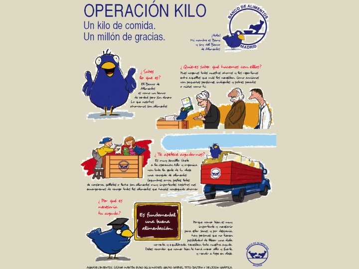 Hablando con los voluntarios de ASPADIR en el pasado taller de jabones, nos comentaron que iban a participar a la «Operacion Kilo» del Banco de Alimentos del pasado fin de semana (http://www.bamadrid.org/kilo.asp), y que podían añadir aportaciones nuestras, aunque fuesen posteriores, a los alimentos recogidos por ellos.