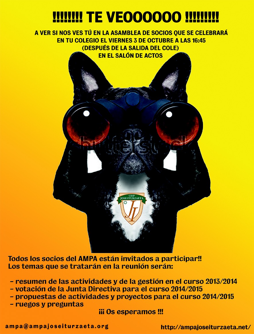 Tenemos muchos planes para este nuevo curso, pero nada puede empezar sin el pistoletazo de salida de la asamblea de socios, que se celebrará el viernes 03/10, a las 16:45 (después de la salida del cole) en el salón de actos del colegio..