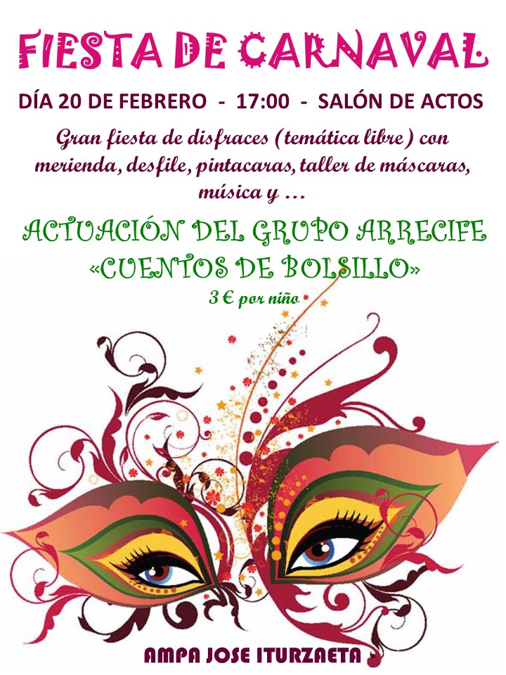 Habrá musica y baile, pintacaras, taller de mascaras, merienda, y una actuación del «Grupo Arrecife»…