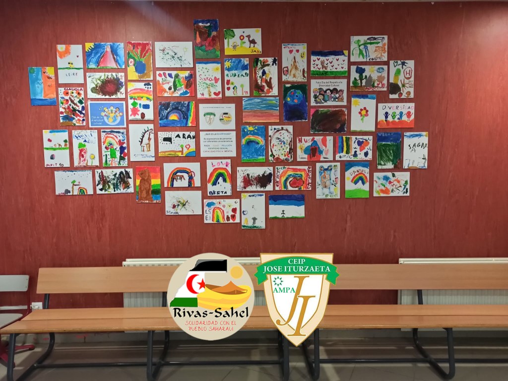 Así de bonita quedó la exposición con los lienzos pintados por nuestr@s pequeñ@s asistentes al Taller de Diversidad.
