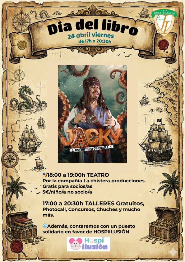 🔆18:00 a 19:00h TEATRO JACKY UNA HISTORIA DE PIRATAS 🎭 de la compañía La chistera producciones (Gratuito para soci@s/5€ niñ@ NO soci@).