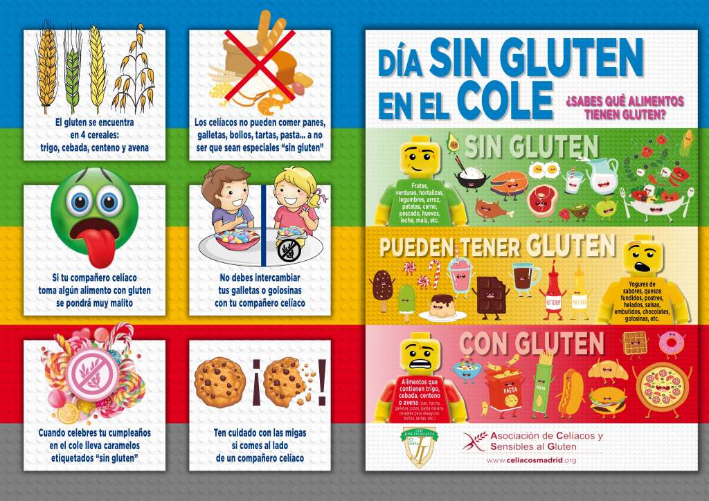Además, la Asociación de Celíacos y Sensibles al Gluten de Madrid ha preparado unos materiales didácticos entretenidos para dar a conocer la enfermedad celíaca y la dieta sin gluten entre los más pequeños (un cuento, fichas imprimibles,…), que podéis solicitarnos mediante email a: ampajoseiturzaeta@gmail.com