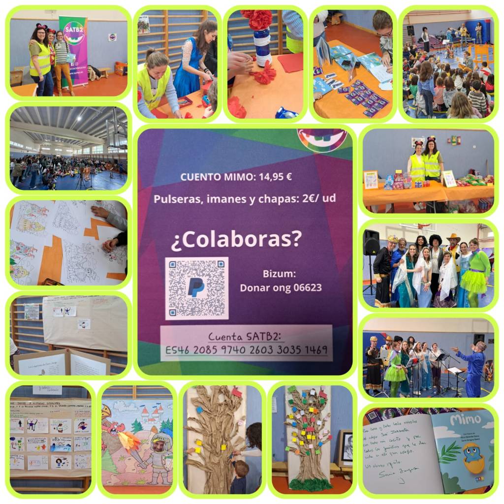 Gracias a vuestras aportaciones hemos podido donar los 470€ recaudados a la Asociación SATB2 (https://www.satb2.es/) y gracias a vuestra participación pudimos disfrutar de una maravillosa tarde realizando talleres, en el cuentacuentos de Mimo, y cantando/bailando junto a nuestro coro SBCPT. Una tarde mágica y musical que permitió aportar un granito de arena en forma de donación.